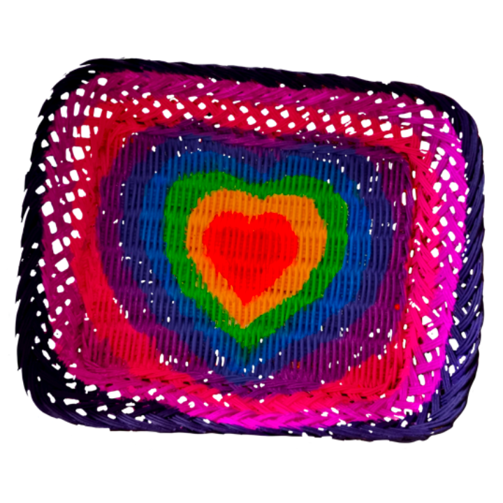 Rainbow Heart Wicker Rectangle Basket